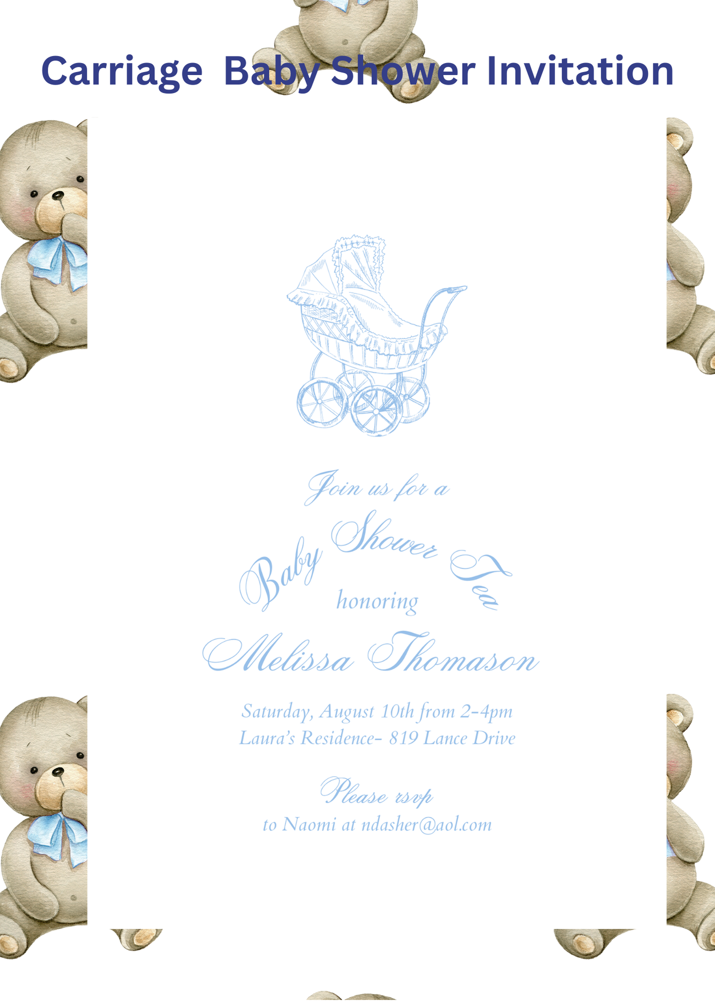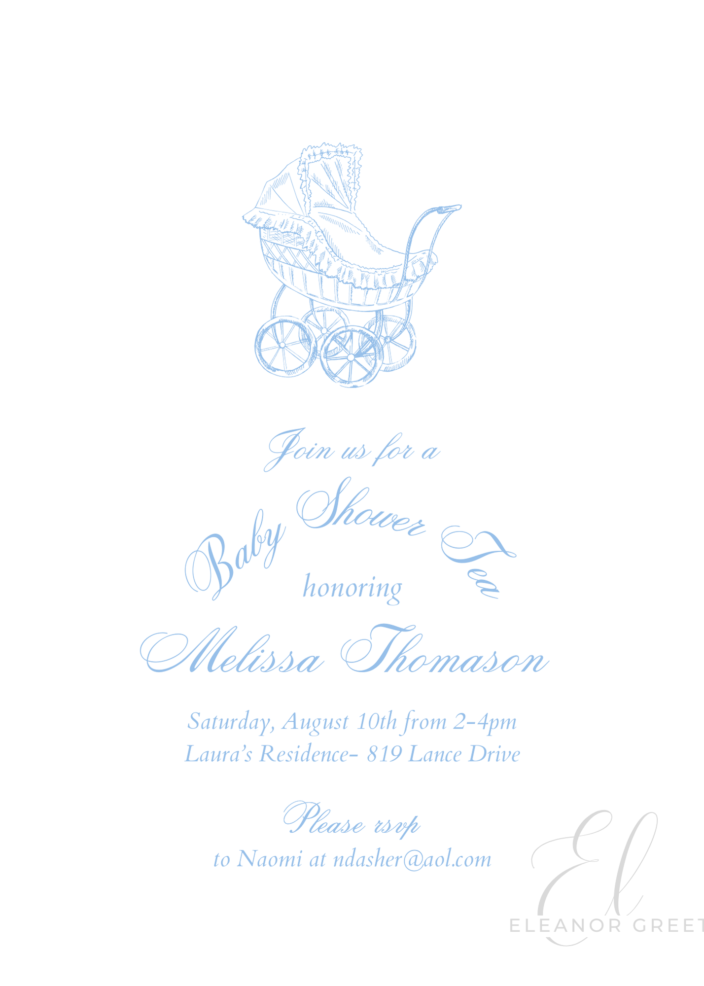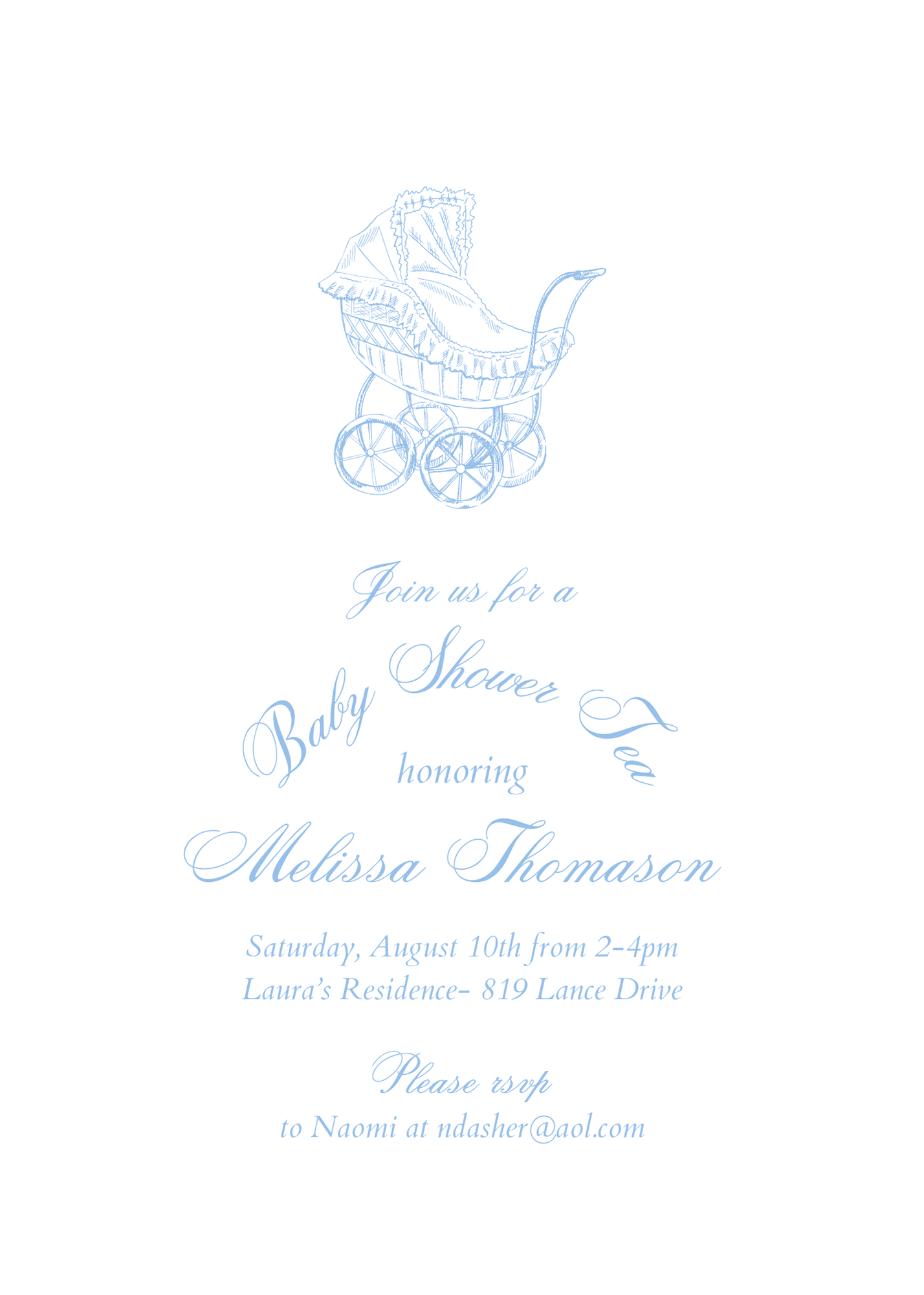 These elegant and minimalistic blue invitations are the perfect choice for announcing your baby shower. With a beautiful carriage design, they are sure to make a lasting impression on your guests. Send them out with ease and style with these baby shower invitations. Envelopes sold separately. *Background photo is part of advertisement display only and is not part of the invitation design or product.*