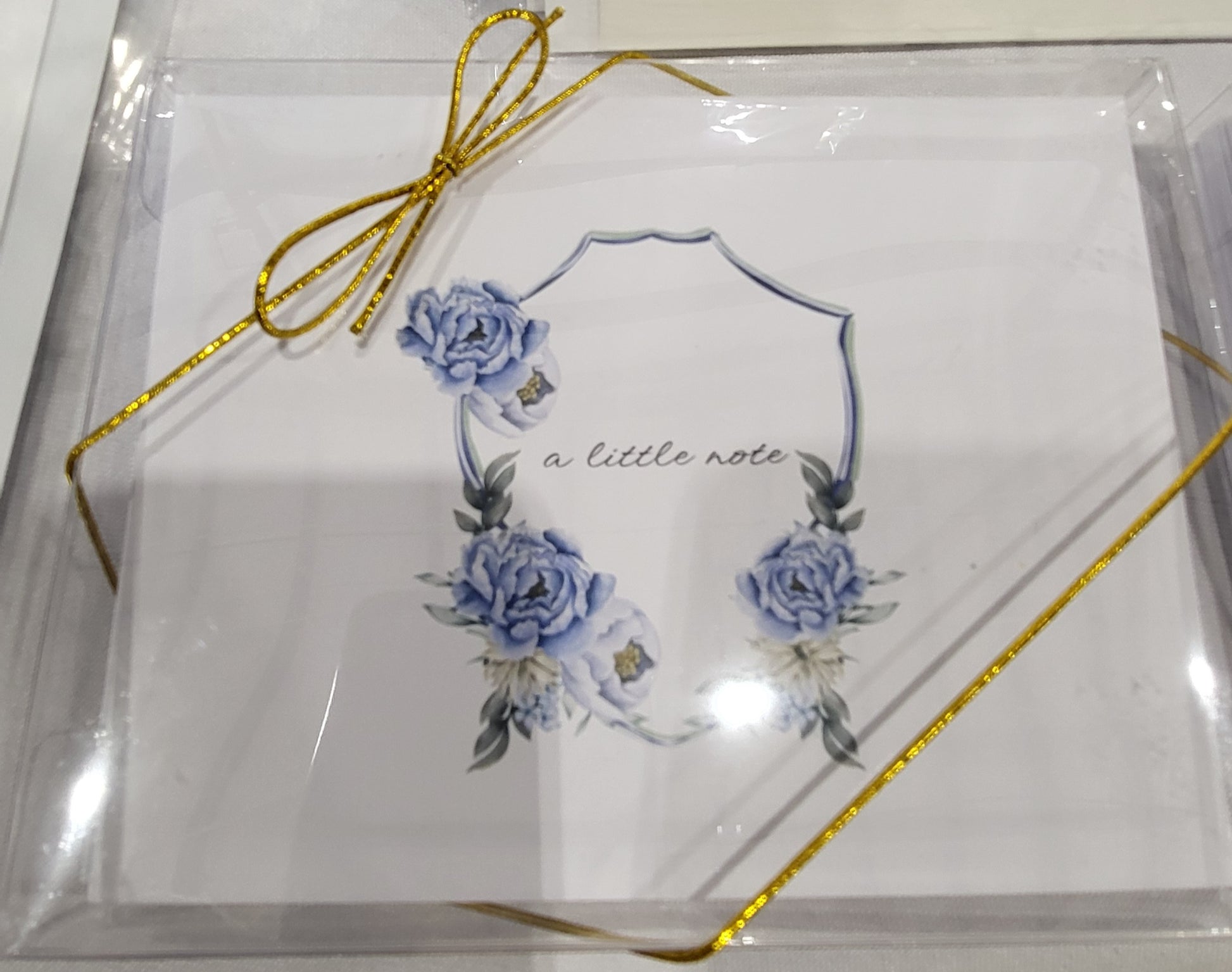 Set of 10. Send your sweetest sentiments with Blue Little Notecard. These elegant notecards feature a touch of delicate blue peonies, perfect for crafting heartfelt messages. Show your loved ones how much you care, because kind words go a long way, especially with a thoughtful notecard. Envelopes included.