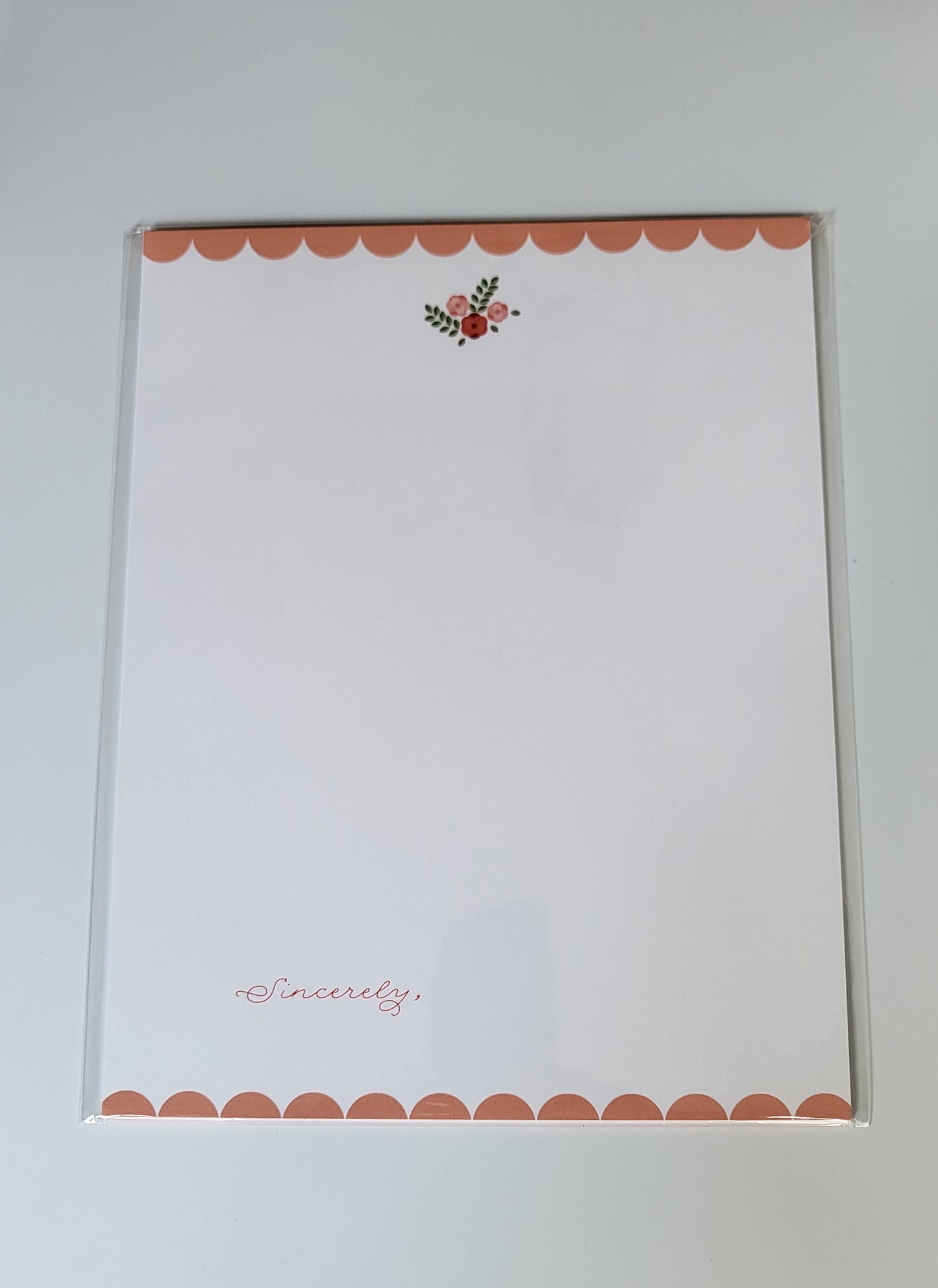 Introducing Pink Floral from the Desk of Letterhead - the perfect addition to your Eleanor Greetings collection. This dainty and elegant stationery features a delightful floral design of pink, peach, and coral colors, making it unique and practical for this lovely spring season.
