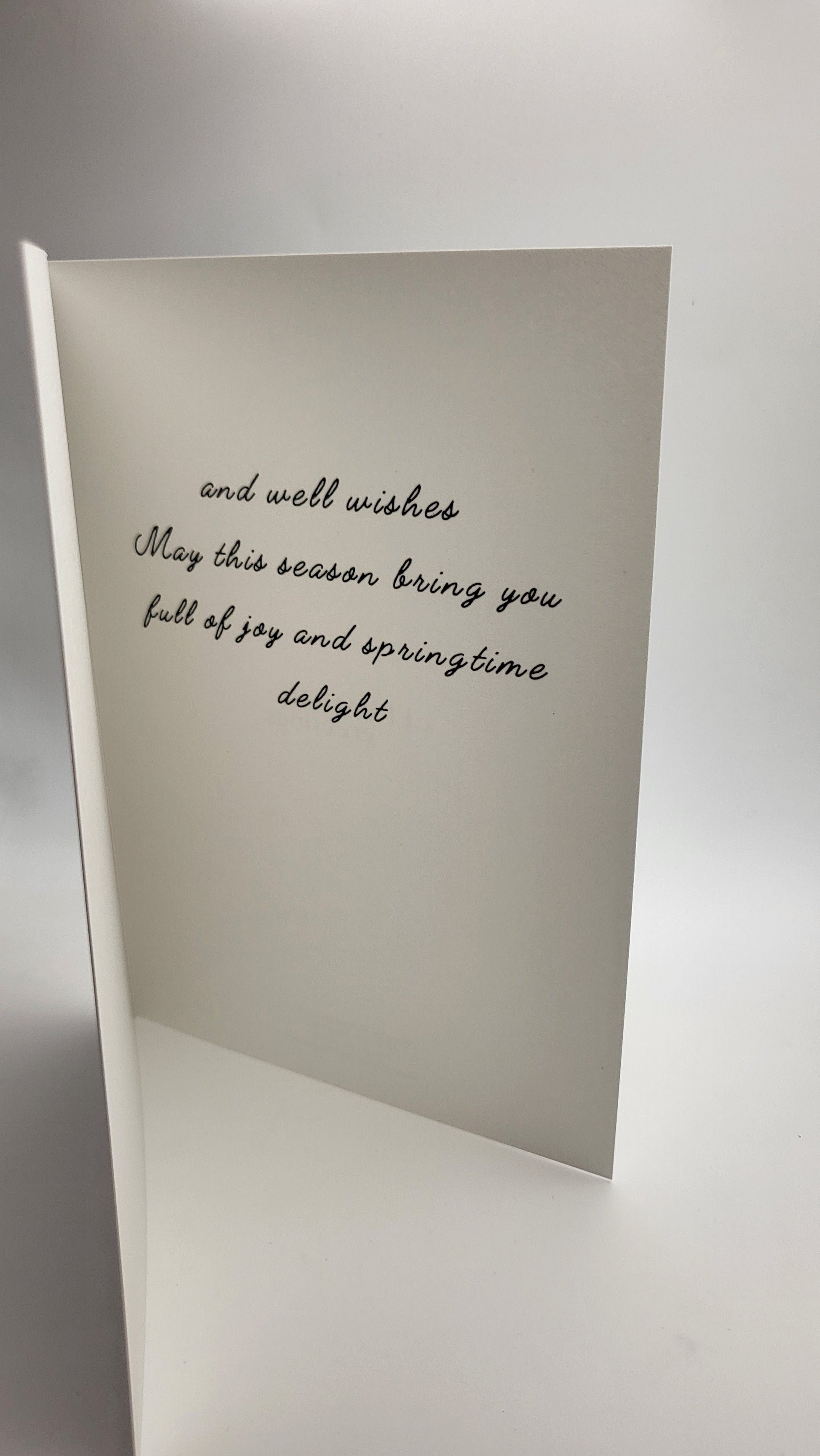 Celebrate the season with our Easter Wishes Card! The soft spring hues and beautiful floral design make it the perfect way to send festive greetings to your loved ones. Give the gift of joy and warmth with this great Easter card. Envelope included.