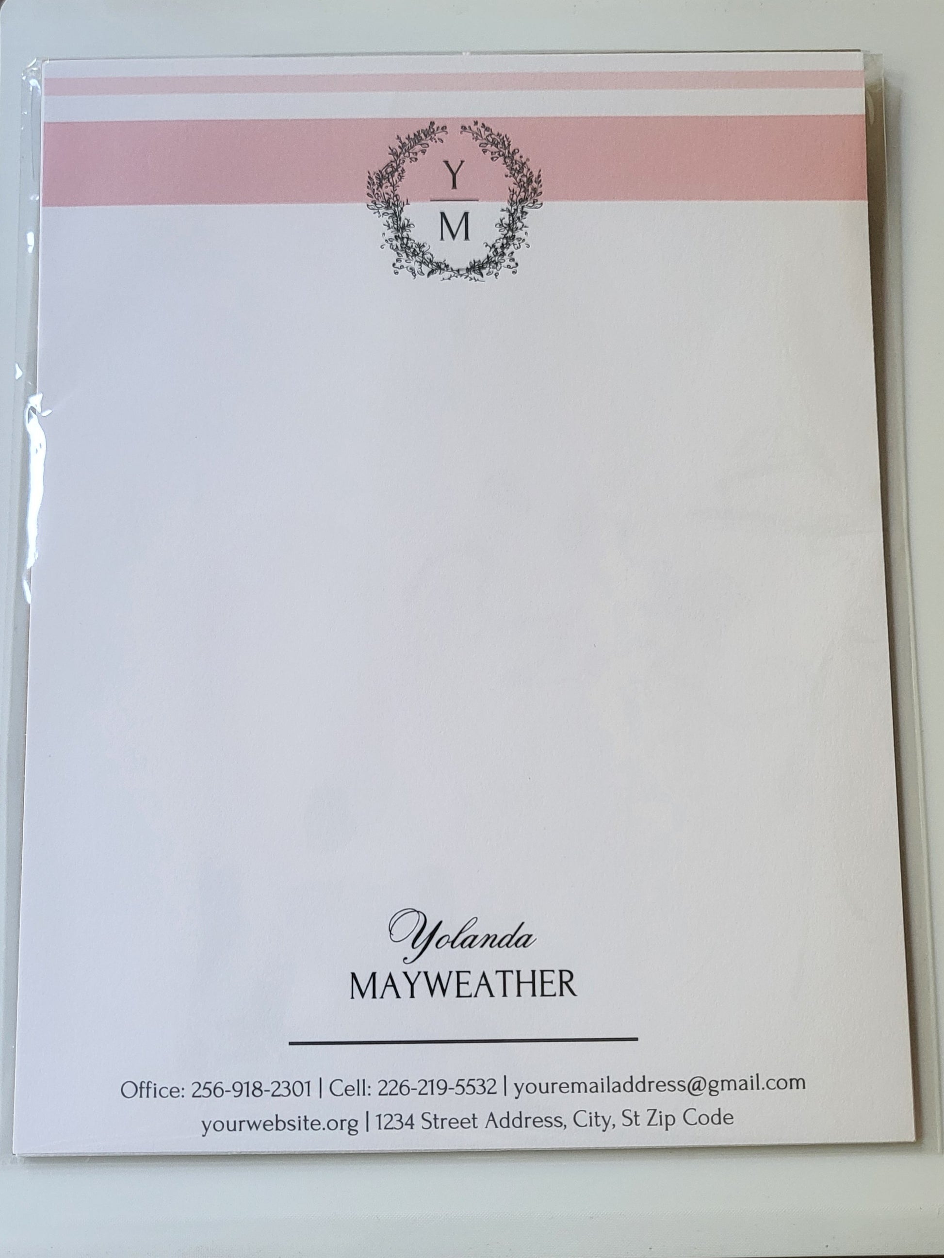 Set of 12 sheets. Elevate your stationery game with our Elegant Monogram Letterhead. Featuring a sophisticated color and stylish monogram design, these letterheads add a definitive touch of elegance to all your correspondence.