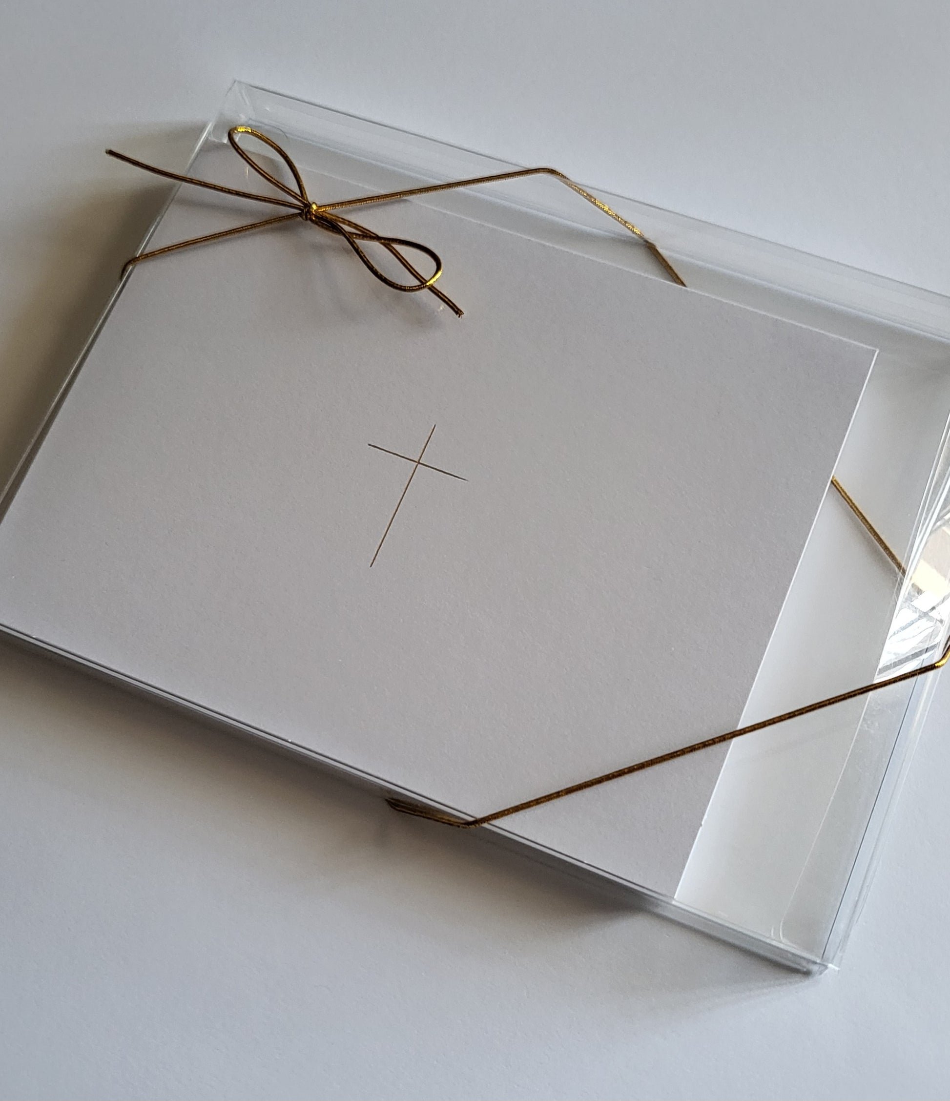 Set of 10. Elevate your correspondence with our Gold Foil Cross Folded Notecards. Each card features a subtle cross design, adding a touch of opulence to your personal or gift-giving stationery. With its elegant and refined style, this notecard set is a truly profound addition to any collection. Envelopes included.