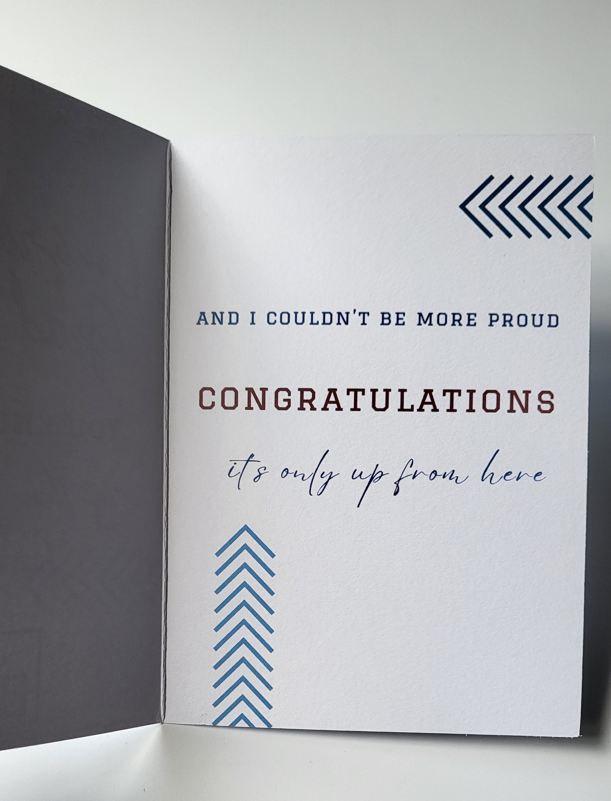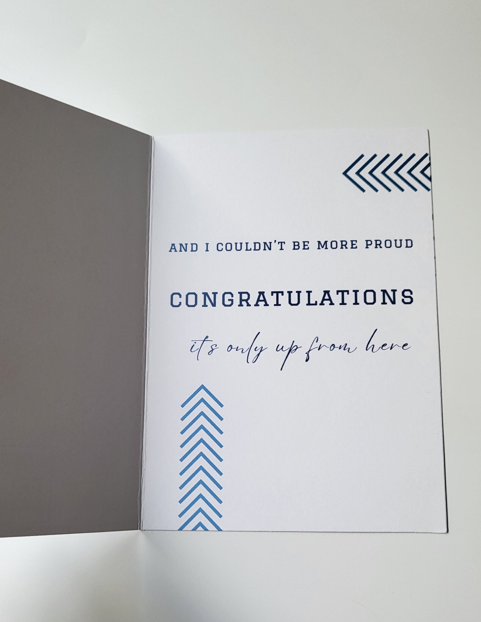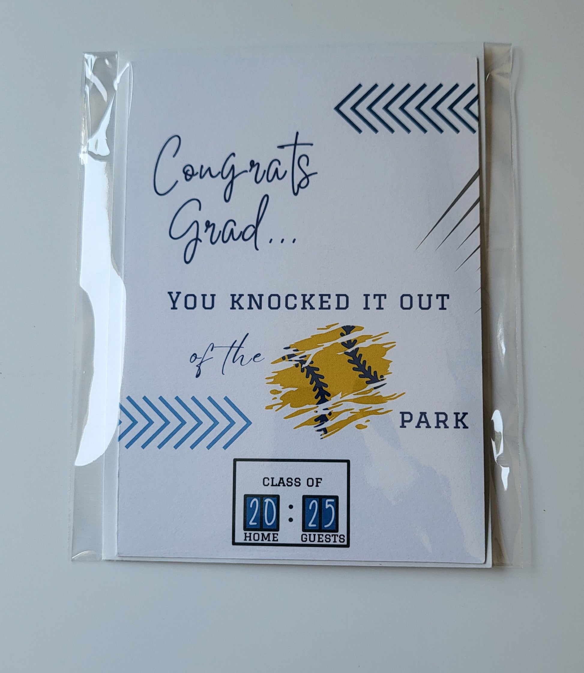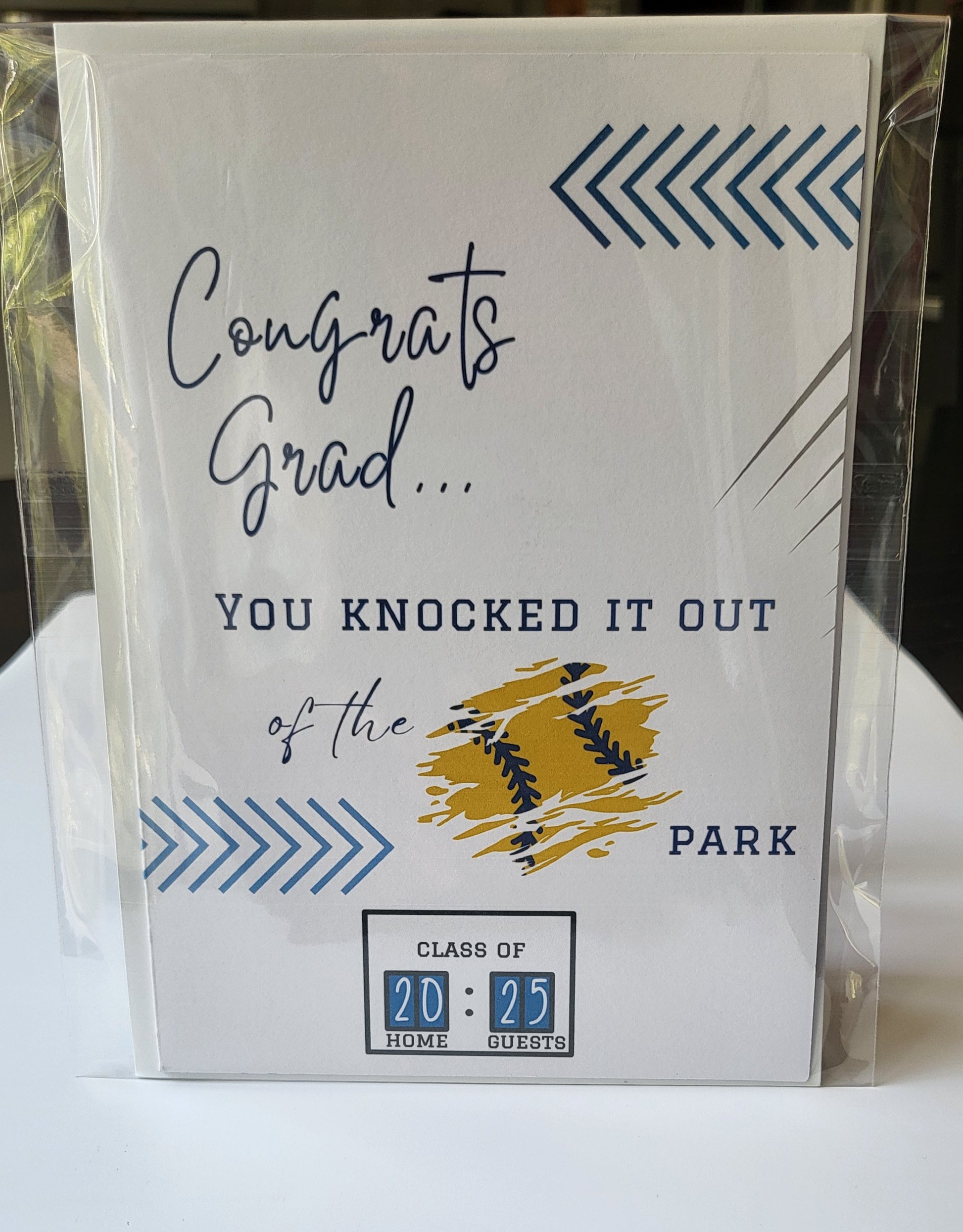 Batter up! This celebratory graduation card is a sport-themed design showcasing a love for the game while congratulating on their achievement. Show your support for the graduate with this unique and fitting card. Envelope Included.