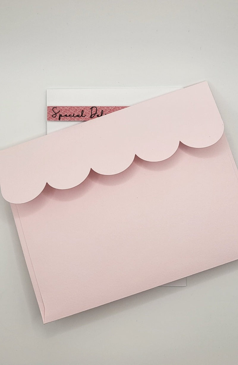 Introducing the Pink Special Delivery Baby Shower Card - an elegant way to welcome a new baby with its charming design and simplistic charm. A beautiful pink scalloped envelope ties together this memorable message of joy and celebration, providing a sophisticated, exclusive way to celebrate the exciting new arrival. Envelope Included.