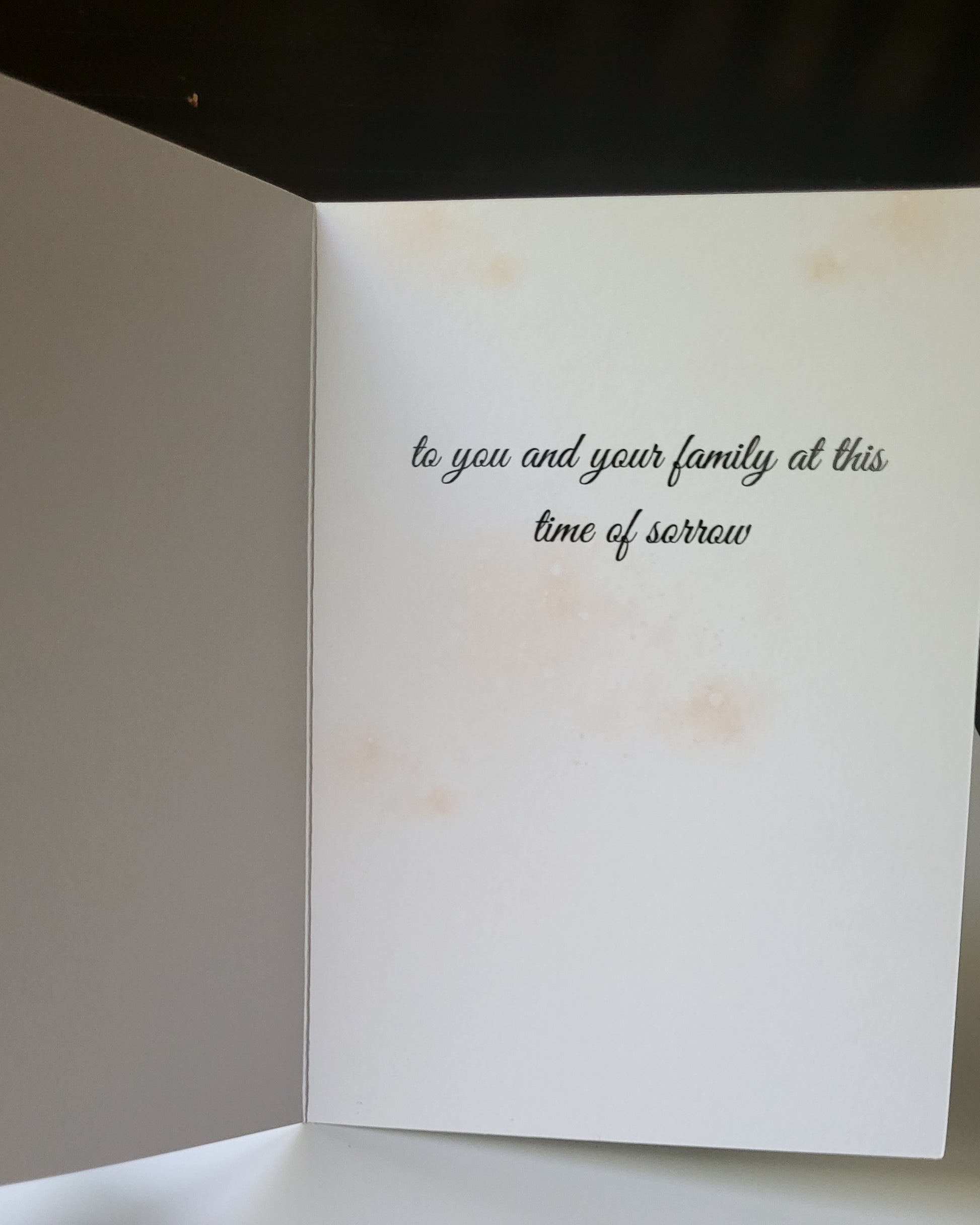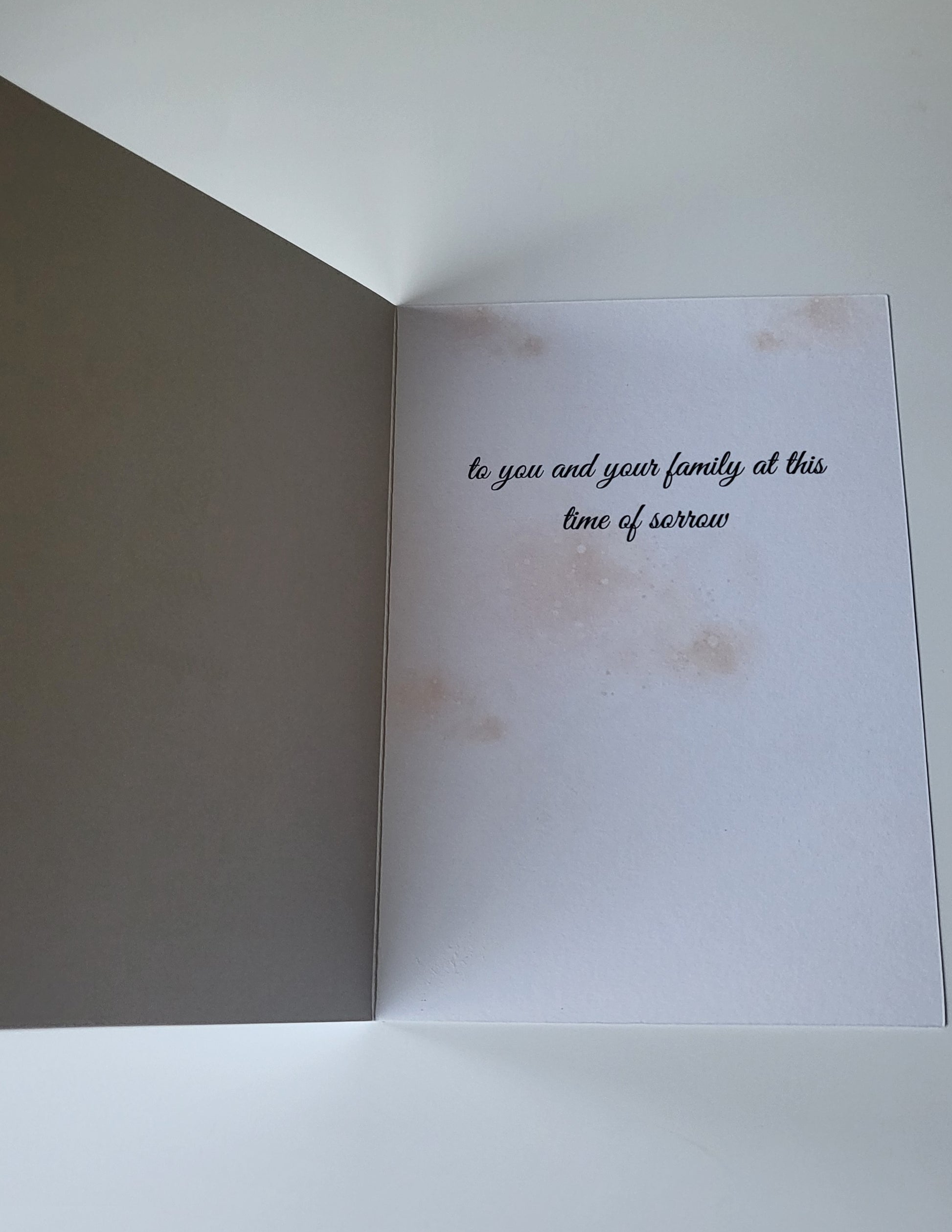 Express your deepest condolences with our Serenity Sympathy Card. From the original Serenity Thinking of You design, this card features heartfelt messages to comfort those in need. Show your support with words that truly convey sympathy and bring a sense of peace during difficult times. Envelope included.