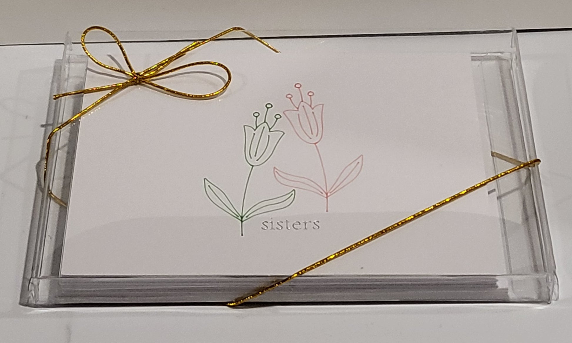 Set of 10. Strengthen your bond, and show your appreciation with our Sisters Folded Notecard Set. With beautiful colors and a dainty design, these notecards are perfect for sending the best message to your loved ones. Give the gift of connection and thoughtfulness. Envelopes included.